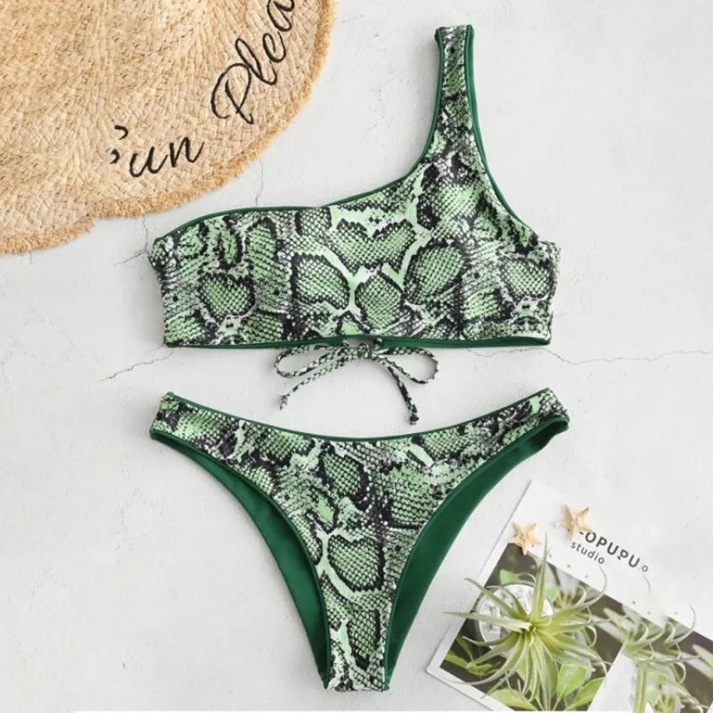 Buy Artificial Snake Skin Printed Women Tankini One Shoulder Lace-up Thick Bikini Swimwear Lady Padded Right Here and Right Now Just for USD US $13.44, Price will be rise up at any time without notification and I cant guaranted that the stock is still available tommorow or next hour. So Please Save It Now!